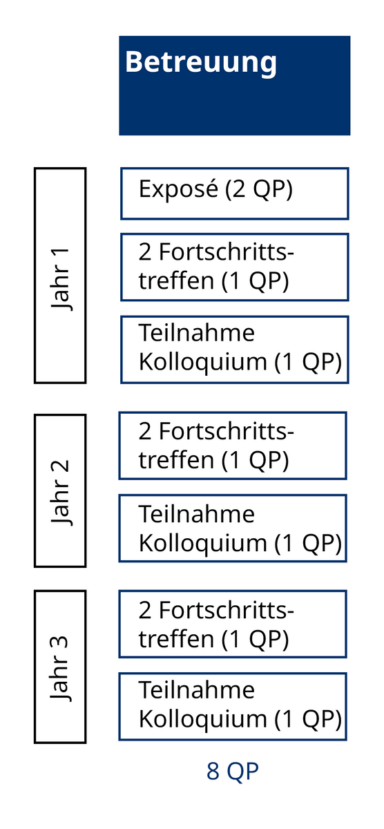 Das Betreuungskonzept des Promotionsprogramm sieht vor, dass jede:r Promovierende von 2-3 Betreuer:innen unterstützt wird. Zwischen allen Beteiligten wird eine Betreuungsvereinbarung erstellt (siehe den blauen Kasten "direkt zu").